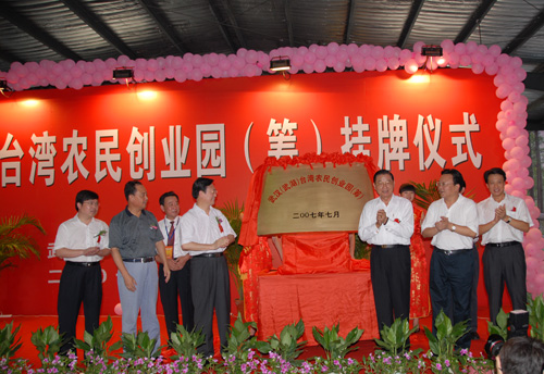 炎炎的烈日難擋臺灣民眾武漢創業的熱情,在中國國民黨副主席江丙坤等人的見證下,總投資五億元人民幣的“臺灣農民創業園”今日正式落戶武漢黃陂區武湖農場。這也是華中地區設立的第一家“臺灣農民創業園”。