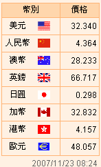 臺幣匯率公告2007.11.23