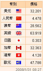 臺幣匯率公告2008.01.31