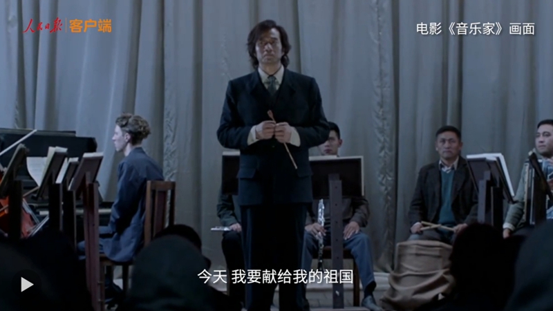 電影《音樂家》中,由演員胡軍扮演的冼星海指揮黃河大合唱。