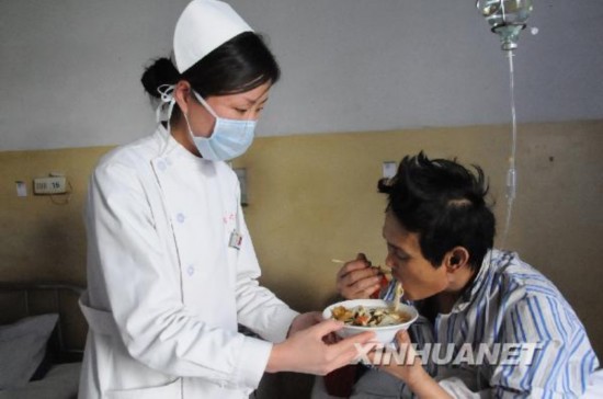 在山西省河津市人民醫院和山西鋁廠職工醫院住院的王家嶺煤礦透水事故獲救人員得到醫護人員的精心護理,多數生命體徵平穩。部分較重病例已轉到太原的重點醫院救治。新華社記者高學余攝